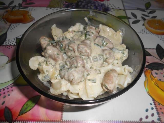 Куриные сердечки в сырном соусе