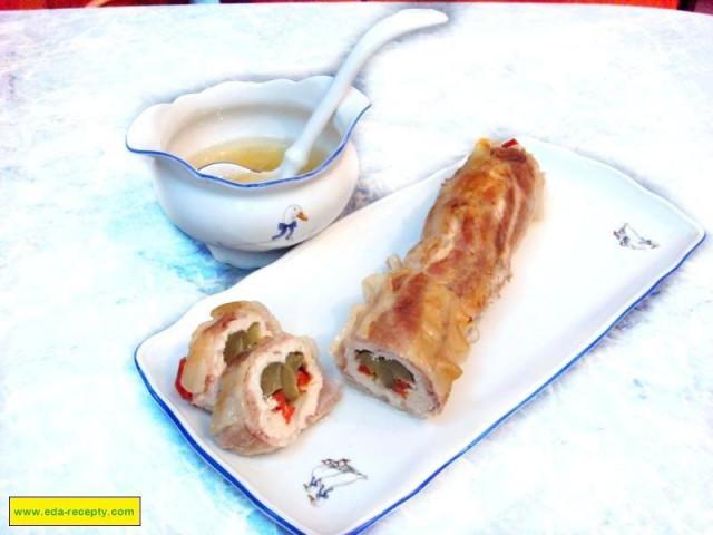 Безумно вкусный, румяный, хрустящий рулет с сочной курочкой внутри! Легко. Вкусно. Красиво. Сочный куриный рулет в беконе украсит любой праздничный стол.
