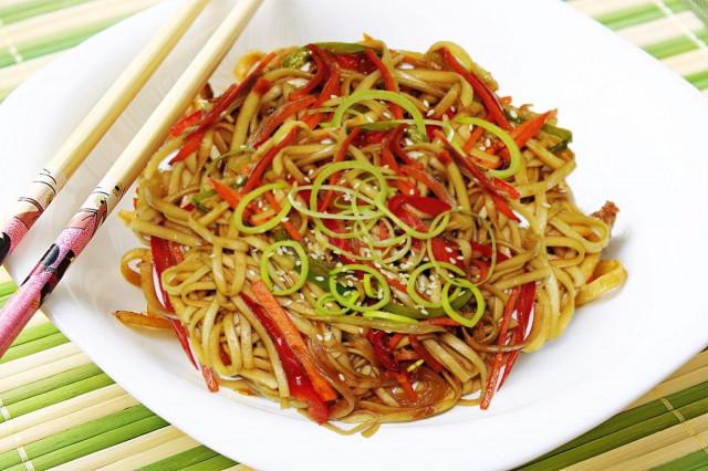 Легкая, ароматная с пикантным вкусом лапша вок! Рецептов приготовления лапши очень много. Когда хочется чего то легкого, можно приготовить это блюдо. Соус Терияки придает блюду кисло - сладкую нотку и замечательно оттеняет вкус овощей.