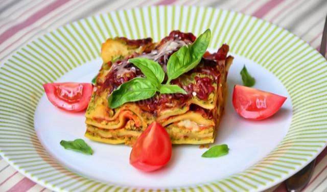 Готовой лазанье дайте слегка остыть и нарежьте на порции. Приятного аппетита!