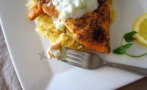 Лосось по-гречески с соусом цацики