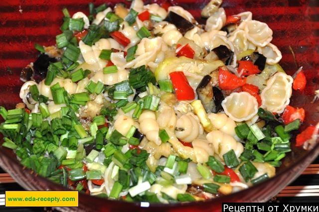 Потом разогрейте духовку. Там должно быть довольно жарко, градусов 200, а вы пока выложите все нарезанные овощи в форму, полейте оливковым маслом и приправьте. Ну все перемешиваем, перекладываем форму в духовку, и, пока соус готовится (на это у него уйдет около получаса), варим макароны. Затем смешиваем одно с другим и подаем на стол. Феерически вкусно!