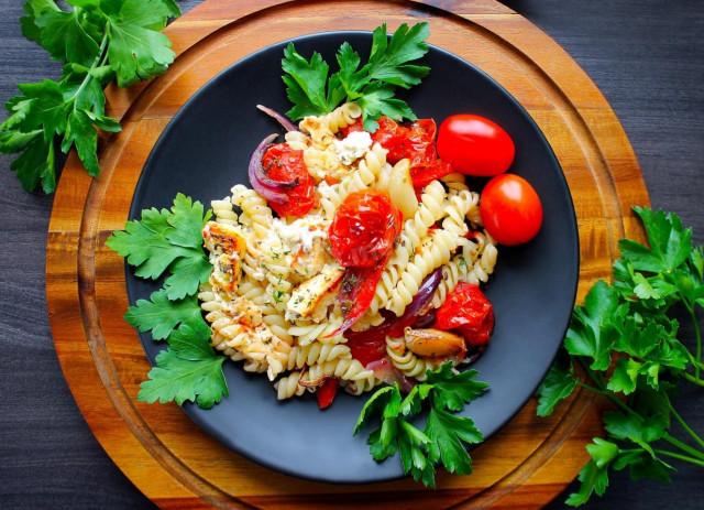 Невероятно вкусные, потрясающе яркие, на быстрый ужин! Макароны с овощами в духовке, что может быть лучше? Готовить такое блюдо совершенно не хлопотно, уложите все продукты в форму для запекания и отправьте в духовку, а тем временем отварите макаронные изделия.