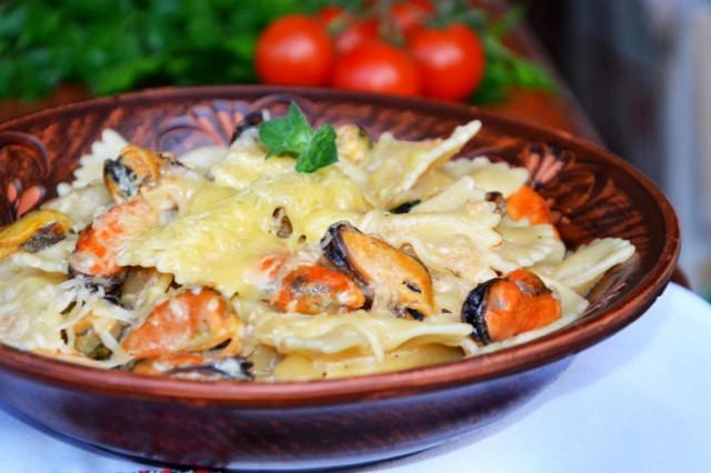 Макароны с замороженными мидиями и сливками