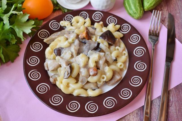 Простое, сытное и вкусное в приготовлении блюдо! Макароны у нас пользуются большой популярностью. Каждый раз меняя соусы и добавки, мы получаем огромное количество различных блюд. Сегодня хочу поделиться с вами рецептом приготовления макарон с грибами в сметанном соусе.