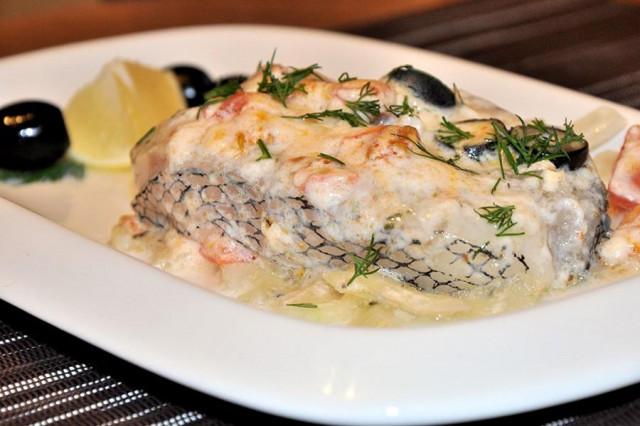 Макрурус под йогуртом с овощами