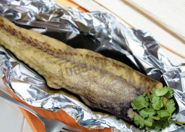 Макрурус в фольге готов. Зелень удалить из брюшка. Тушку разрезать пополам (на порции) или подать к столу целой украсив свежей зеленью. Приятного аппетита!