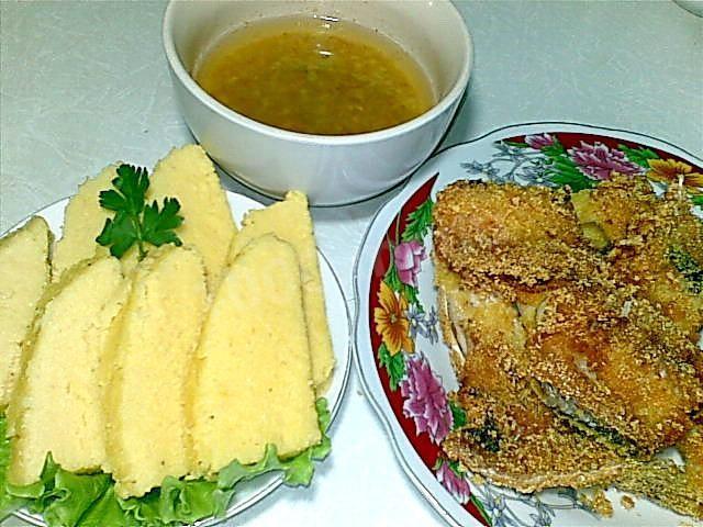 Мамалыга с муждеем и жареной рыбой