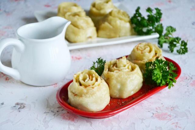 Манты можно подавать со сметаной или любимым соусом. Классические манты отличаются от розочек только внешним видом. Классические манты больше похожи на крупный пельмень, в котором края защипаны определенным образом. Я же готовила манты в виде розочек. В них фарш распределен между слоями теста.