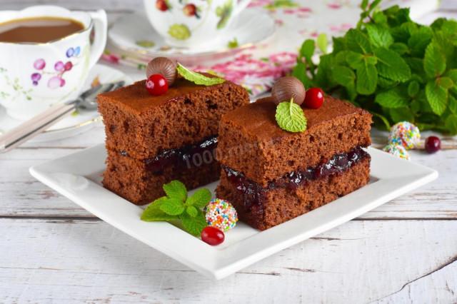 Медовые шоколадные пирожные с лимоном и ягодным джемом