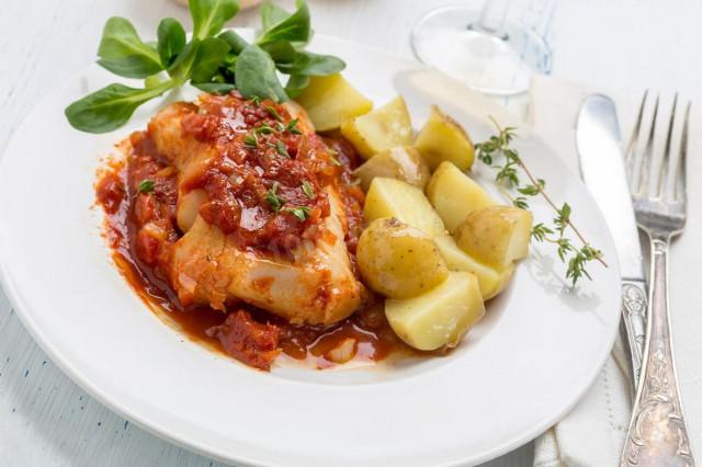 Рыбу можно жарить, запекать, тушить, готовить на пару. Каждый вариант вкусный и по своему хорош. В данном рецепте описывается процесс тушения рыбы минтай. В итоге она получается сочной, с обилием ароматного томатного соуса.