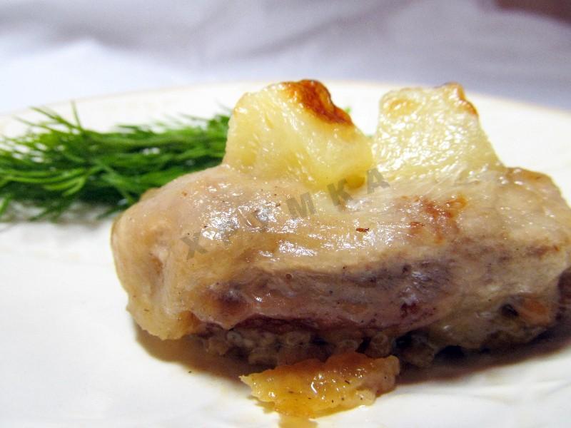 Мясные медальоны с ананасами