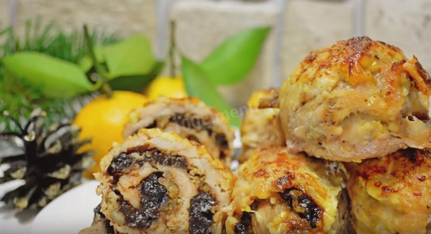 Мясные рулеты с черносливом и орехами