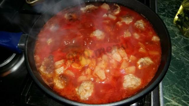Залить соусом шарики тушить 15 минут. На гарнир пюре и рис. Приятного аппетита.