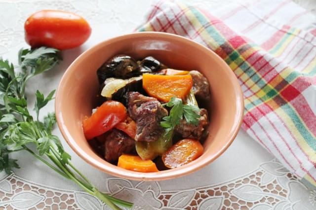 Пакет с готовым блюдом осторожно надрежьте - будет выходить струя горячего пара, постарайтесь не обжечься. Сразу подавайте - мясо получается просто тающим, пропитанным ароматами и вкусами всех ингредиентов, овощи тоже очень вкусны.
