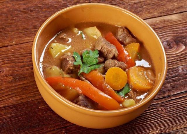 Теперь подготовьте овощи: картошки средней величины, одну большую морковь, болгарский перец. Овощи помойте и крупно порежьте: морковь большими кружками, перец продольными полосками, а картофель четвертинками.