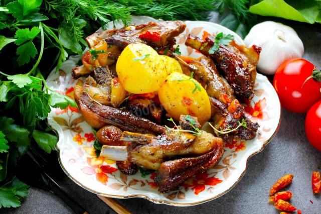 Как приготовить мясо в казане в духовке? Подготовьте все продукты, указанные в рецепте. Чтобы мясо получилось максимально сочное, возьмите крупные кусочки на кости (по 100-150гр.) с прослойками жира. В рецепте использовались рёбрышки. Я взяла баранину, но можно брать любое мясо по вашему выбору (только учитывайте, что время приготовления при этом может изменяться).