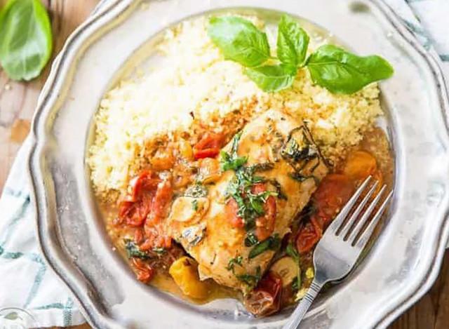 Белое вино в этом рецепте использовать не обязательно - это по желанию. Вино добавит рыбе и готовому блюду в целом интересные нотки, но и без него получится очень вкусно, разве что вкус будет более нежным. Помидоры можно использовать и консервированные в собственном соку, но со свежими получится чуть вкуснее. В крайнем случае даже вместо помидоров можно положить томатный соус или разведенную томатную пасту.
