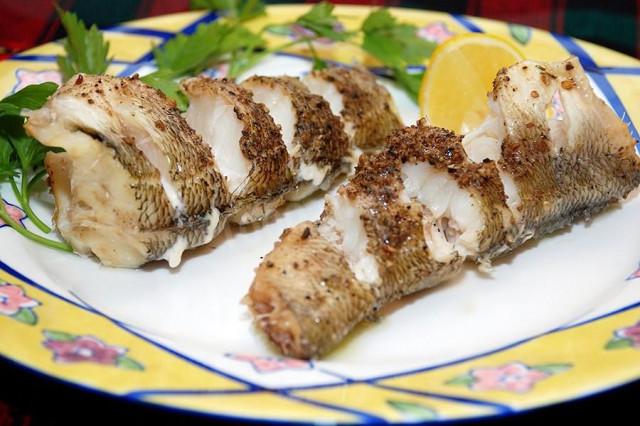 Подаем рыбку на подогретых тарелках, украсив зеленью и долькой лимона.