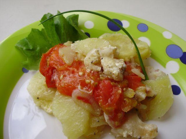 Пангасиус с картофелем и помидорами в микроволновке