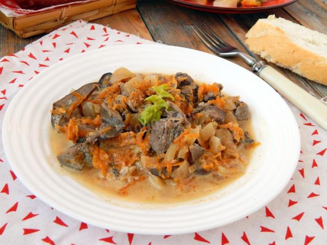 Печень говяжья тушеная в сметане