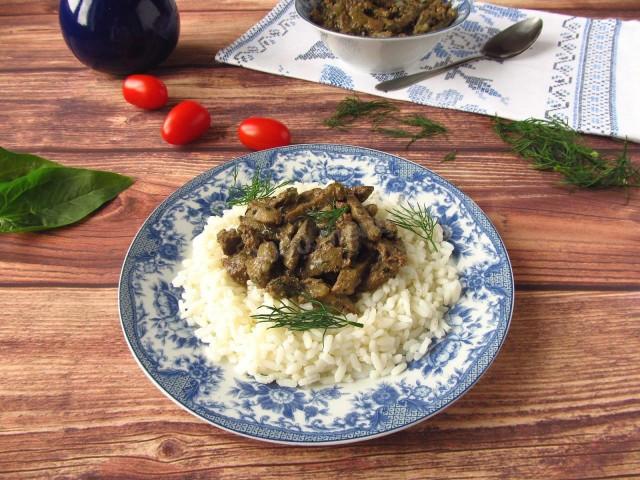 Отличный вариант сытного обеда или ужина! Печень с гарниром - простое, сытное, полноценное блюдо, которым можно накормить всю семью без больших затрат времени. Печень - полезный продукт, содержит большое количество белка, аминокислот. А главное, она богата железом, поэтому особенно рекомендуется при анемии. Тушеная говяжья печень сочетается абсолютно с любым гарниром, будь то картофель, гречка, макароны или тушеные овощи. Хорошим вариантом будет также рассыпчатый рис. Печень не следует тушить долго, тогда она получится нежной и вкусной.