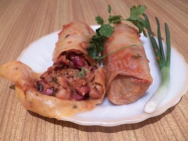 Положить 2-3 ст.ложки фарша на капустный лист.
