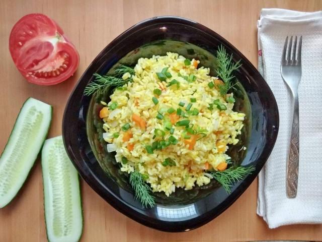 Также я добавила куркуму, потому что мне нравится, что рис приобретает красивый желтый оттенок и немного остроты. Вы можете добавлять свои любимые приправы. Это может быть и хмели-сунели или карри, или просто черный молотый перец. Также для аромата можно добавить чеснок.