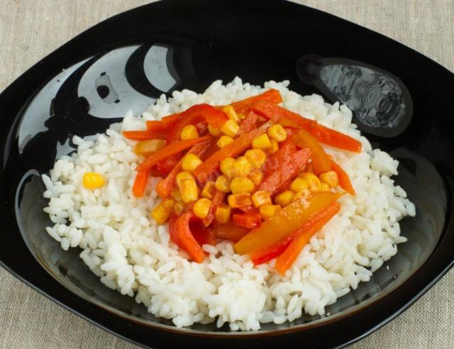 Рис со сладкой кукурузой карри паприкой и томатной пастой