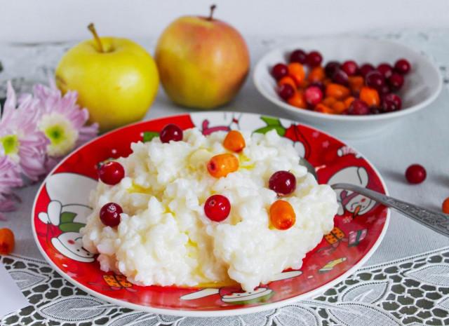 Когда все молоко впитается в крупу, выньте горшочки и долейте оставшееся молоко и масло, поставьте еще на 10-15 минут. Затем духовку выключите, а горшочки еще оставьте потомиться минут на 15. Готовую кашу подавайте или переложив её на тарелку, или сразу в горшочках. Приятного аппетита!