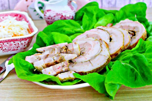 Рулет из свиной брюшины в духовке