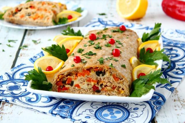 Готовый рулет нарежьте на порционные кусочки и подавайте. Приятного аппетита!
