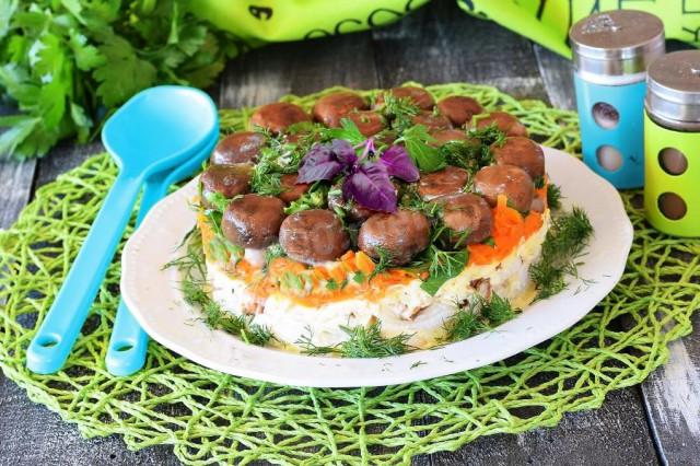 Салат грибная полянка с куриным филе