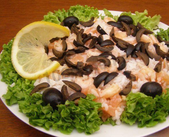 Для любителей креветок и семги! Приготовь нарядный и вкусный салат! Сочетание в салате креветок, риса и семги дают неповторимый вкус. Приготовить такой салат можно дома очень быстро, особенно, когда времени мало, а гости уже на пороге.