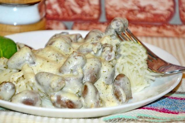 Вот и наше готовое блюдо. Сердечки в сметанном соусе очень вкусные, нежные и ароматные. Подаем с любым гарниром на ваш вкус. Приятного аппетита!