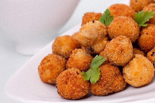 4. Возвращаем грибы в кляр, затем панируем в сухарях.