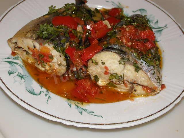 Скумбрия с чесноком, болгарским перцем и томатной пастой