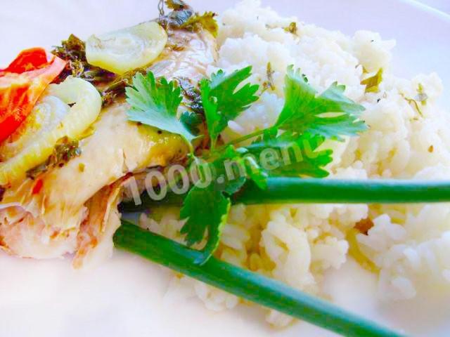 Элегантная рыбка, которая не изнурит вас готовкой. Не трудоемко, сравнительно недолго и готовится без участия повара, потому что вы легко справитесь собственными силами. Рыба, рис, овощи и зелень - хорошее сочетание, которое как раз и задействовано в данном рецепте.