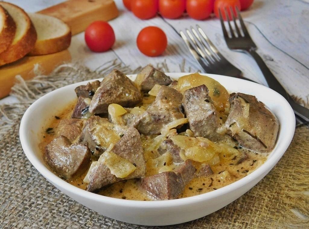 Вкусное, питательное и очень полезное блюдо! Печень, приготовленная с луком, получается очень вкусная и ароматная. А готовится она легко и просто. Сметанный соус придает готовому блюду нежности и мягкого сливочного послевкусия.