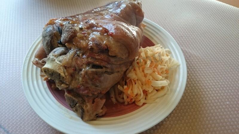 Заливаем рульку пивом и добавляем нужное количество воды, чтобы покрыло всё мясо. Солим, перчим, кладём лавровый лист, стебель сельдерея, лук, зелень. Варим два часа.