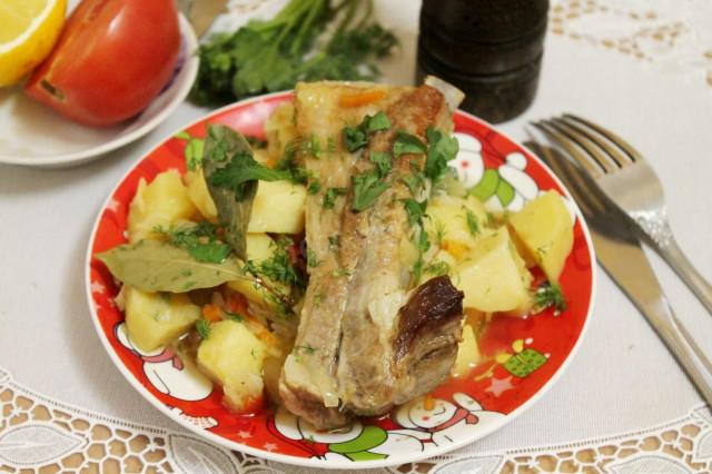 Свиные ребрышки с болгарским перцем и картошкой тушеные