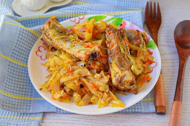 Чем дольше капуста будет тушиться, тем лучше все ингредиенты пропитаются соком и ароматом друг друга. Готовность капусты, все же, определяйте на свой вкус. Кто-то любит, чтобы она немного хрустела, а кому-то нравится совсем мягкая. Готовую тушеную капусту с ребрышками снимите с огня и оставьте под крышкой, чтобы блюдо настоялось. Затем подавайте в горячем виде. Приятного аппетита!