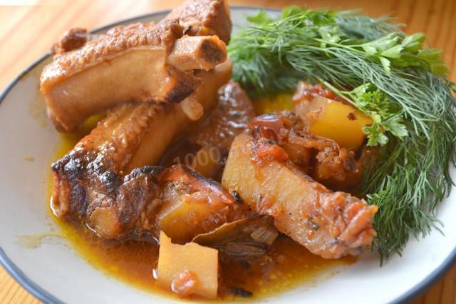 Ребра для приготовления этого рагу лучше брать мясные. При жарке жир растопится и пропитает овощи, поэтому лучше чтобы мяса на кости оставалось как можно больше.