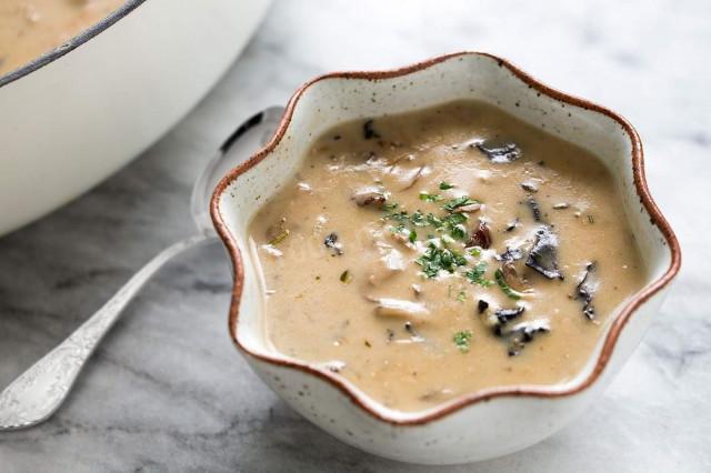 Изысканное сливочное угощение для настоящих гурманов! Сырный крем суп с грибами - блюдо, относящееся к европейской кухне. В этом рецепте предлагается приготовить этот дивный суп из лесных грибов. Подойдут практически любые - и весенние сморчки, и летние лисички, и осенние опята. Подбререзовики и подосиновики тоже станут отличным вариантом, а суп из белых грибов будет особенно ароматным и богатым на вкус. Херес, сыр, сливки и душистые травы подчеркнут вкус супа и подарят настоящее наслаждение всем гурманам.