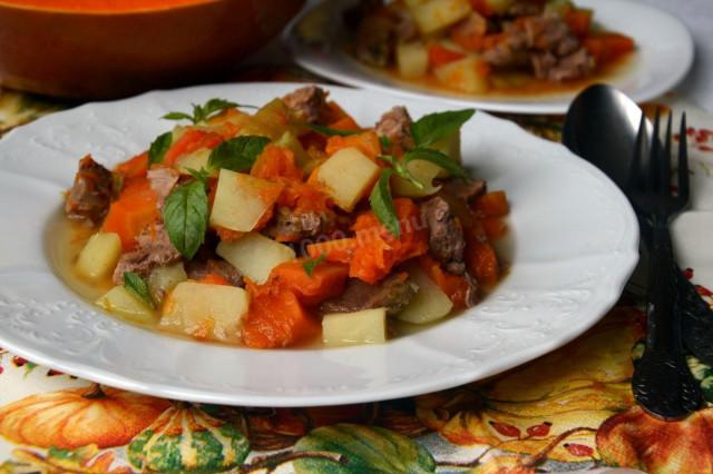 Телятина тушенная с тыквой