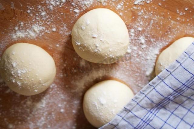 Тесто складывают пополам и кулачком разминают в лепешку.