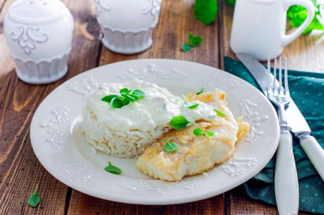 Вкусный ужин для всей семьи, из обычных продуктов! Треска с рисом — классическое сочетание, проверенное временем. Блюдо получается совсем не сухим за счет добавления сливочного ароматного соуса. Готовится оно очень быстро и нравится всем — и взрослым, и детям.
