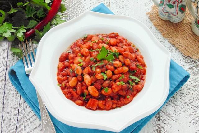 Сервируем фасоль на тарелке, посыпаем рубленной петрушкой и подаем на стол.
