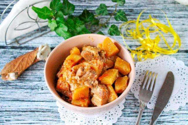Добавьте в кастрюлю картофель, накройте крышкой и тушите все при медленном кипении минут 40. Готовность блюда определите по картошке. Она должна легко разламываться при надавливании ложкой. При необходимости время готовки увеличьте.