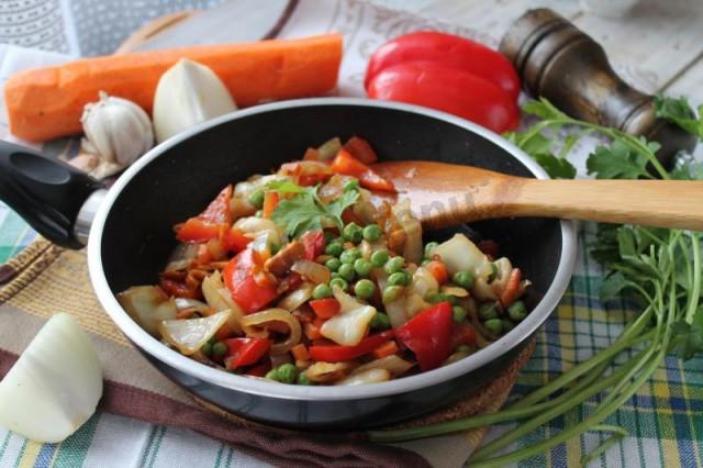Тушеные капуста перец лук морковь на сковороде